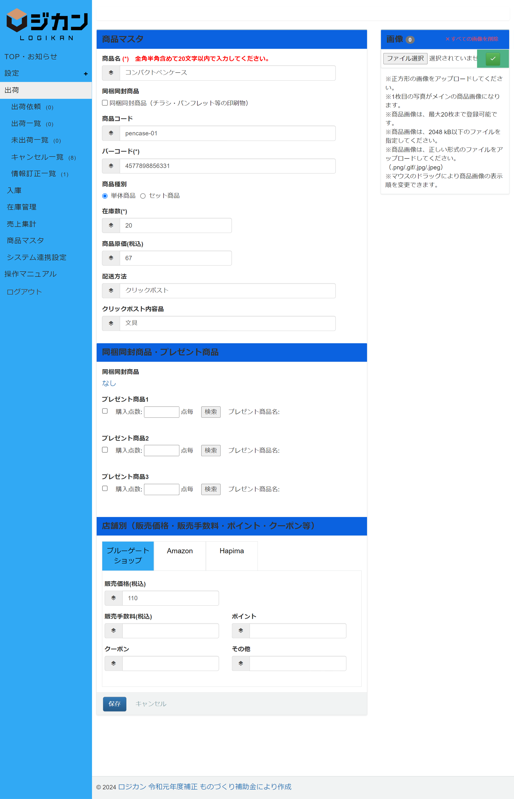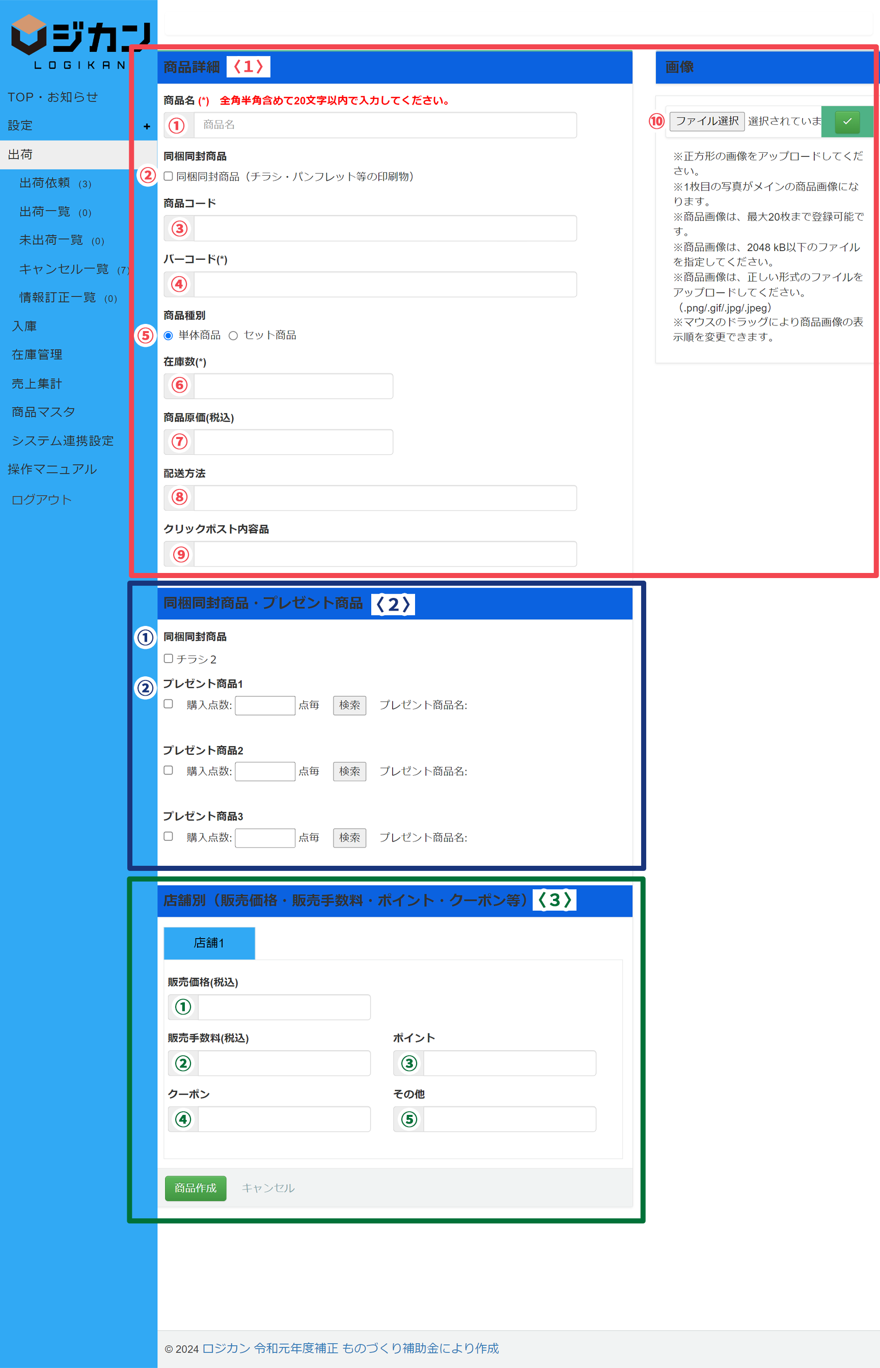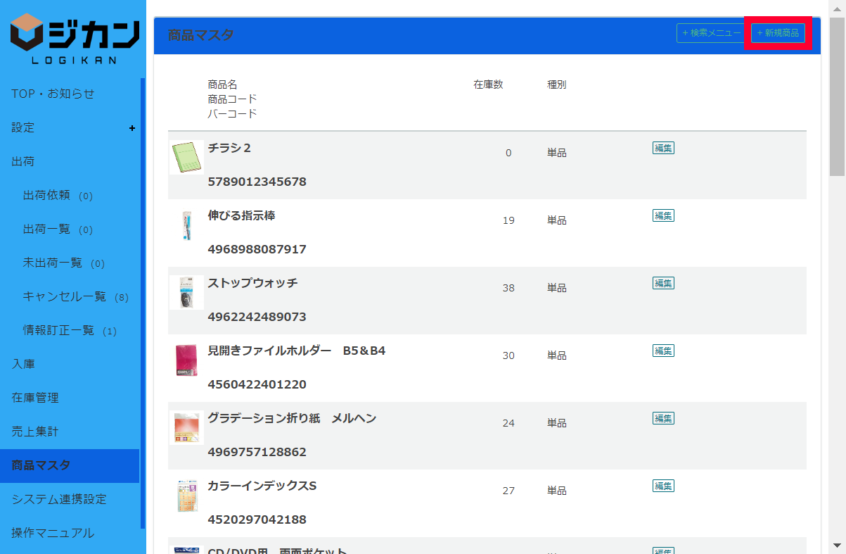 「商品マスタ」ページでは、ロジカンで出荷する商品を登録する方法を説明します。