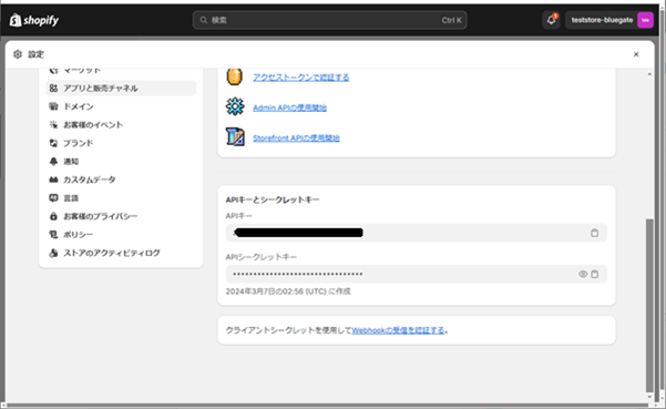Shopifyショップ連携設定項目の確認